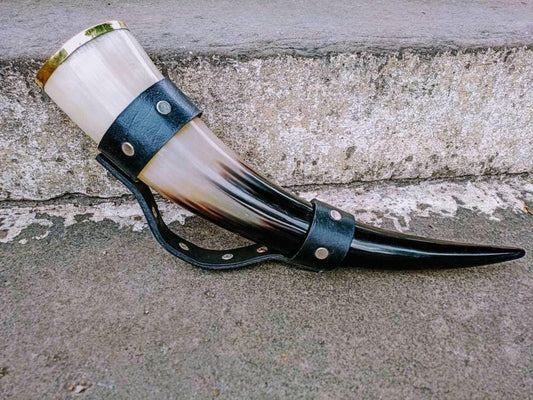 Viking Drinking Horn Cup With Leather Strap Handle - Viking Valhalla Norse Cup Decor Medieval GiftRegular price $45.00Regular priceUnit price / per-