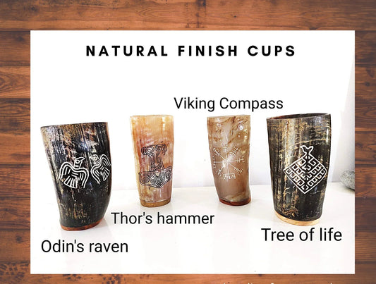 Ox Horn Viking Drinking Mug Cups with natural finish - Ale Beer Wine Goblet Tankard Beaker Size 5-6inches (Personalization Available)Regular price $25.00Regular priceUnit price / per-